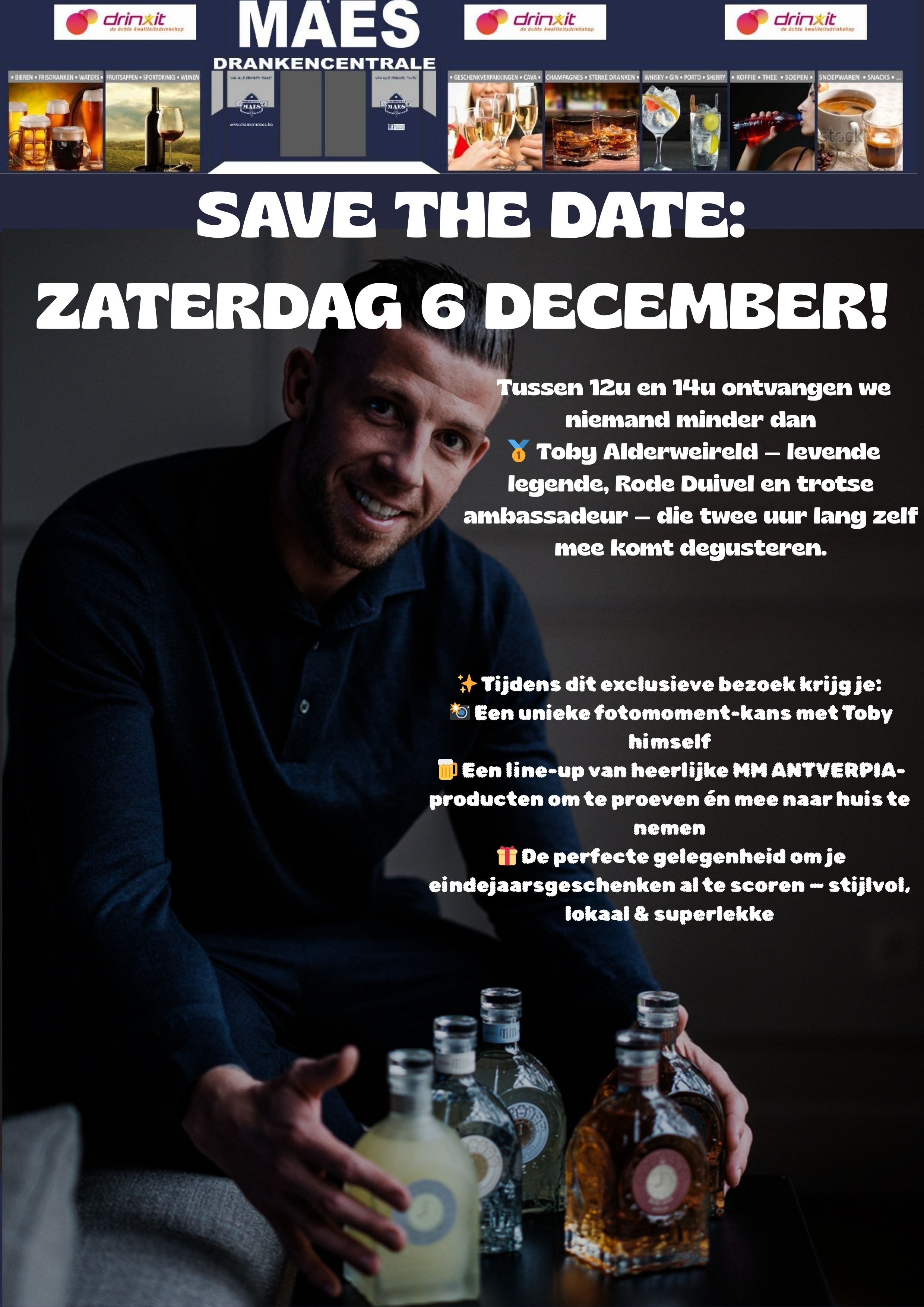 |  | Zaterdag 6 december 2025 van 12u tot 14u Degustatie: MM Antverpia Tussen 12u en 14u ontvangen we niemand minder dan Toby Alderweireld - levende legende, Rode Duivel en trotse ambassadeur - die twee uur lang zelf mee komt degusteren. Tijdens dit exclusieve bezoek krijg je: - een unieke fotomoment-kans met Toby himself - een line-up van heerlijke MM Antverpia producten om te proeven en mee naar huis te nemen - de perfecte gelegenheid om je eindejaarsgeschenken al te scoren - stijlvol, lokaal en superlekker. |  | Zaterdag 18 oktober 2025 vanaf 14u Degustatie: Nikka Whisky |  | Zaterdag 11 oktober 2025 van 11u tot 17u Degustatie: Brouwerij De Meester Proef het assortiment van brouwerij de Meester ! Actie: 5 + 1 GRATIS |
